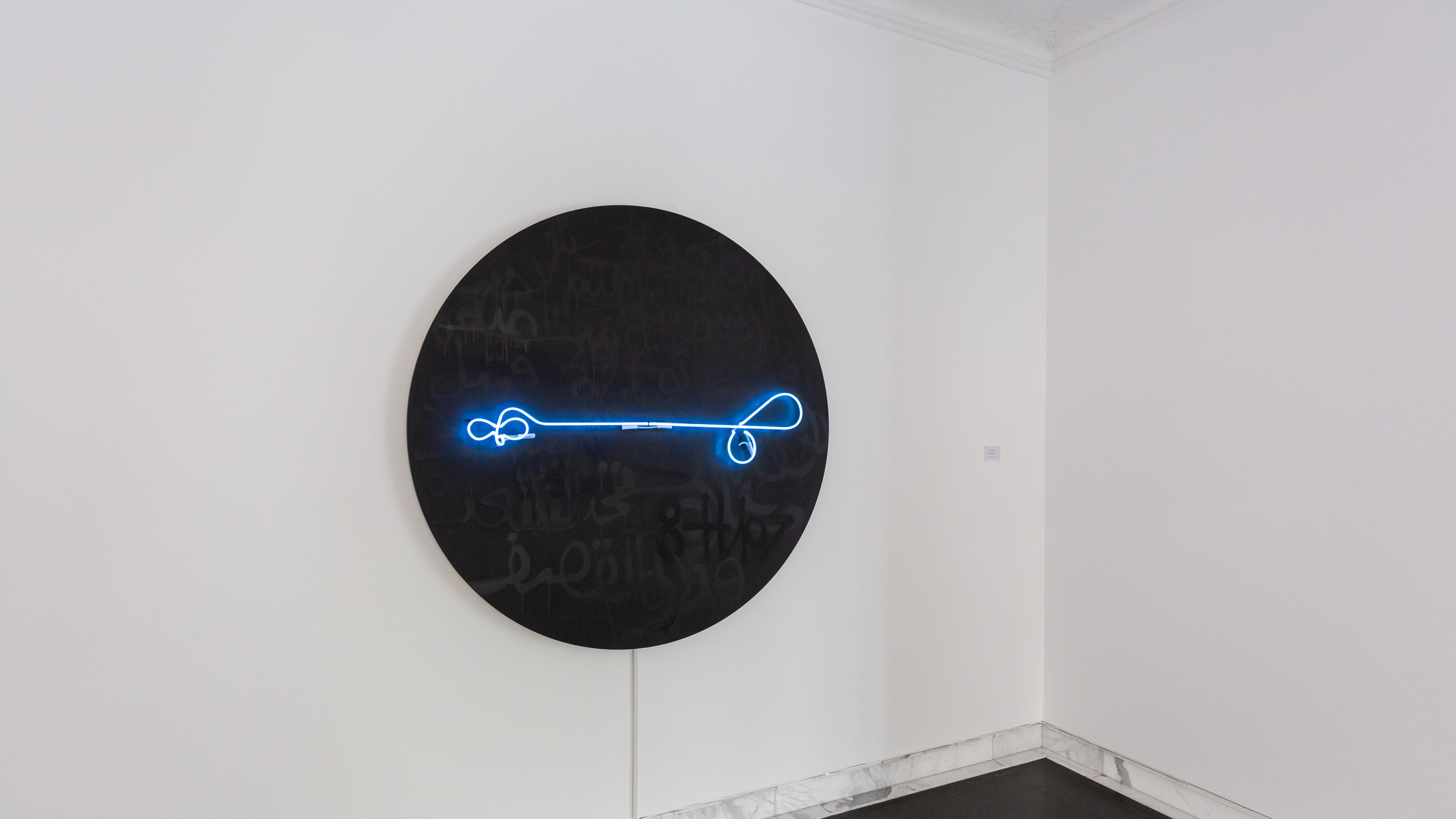 Transcripts of protests slogans, Neon glass mounted on 150 cm Canvas, 2019