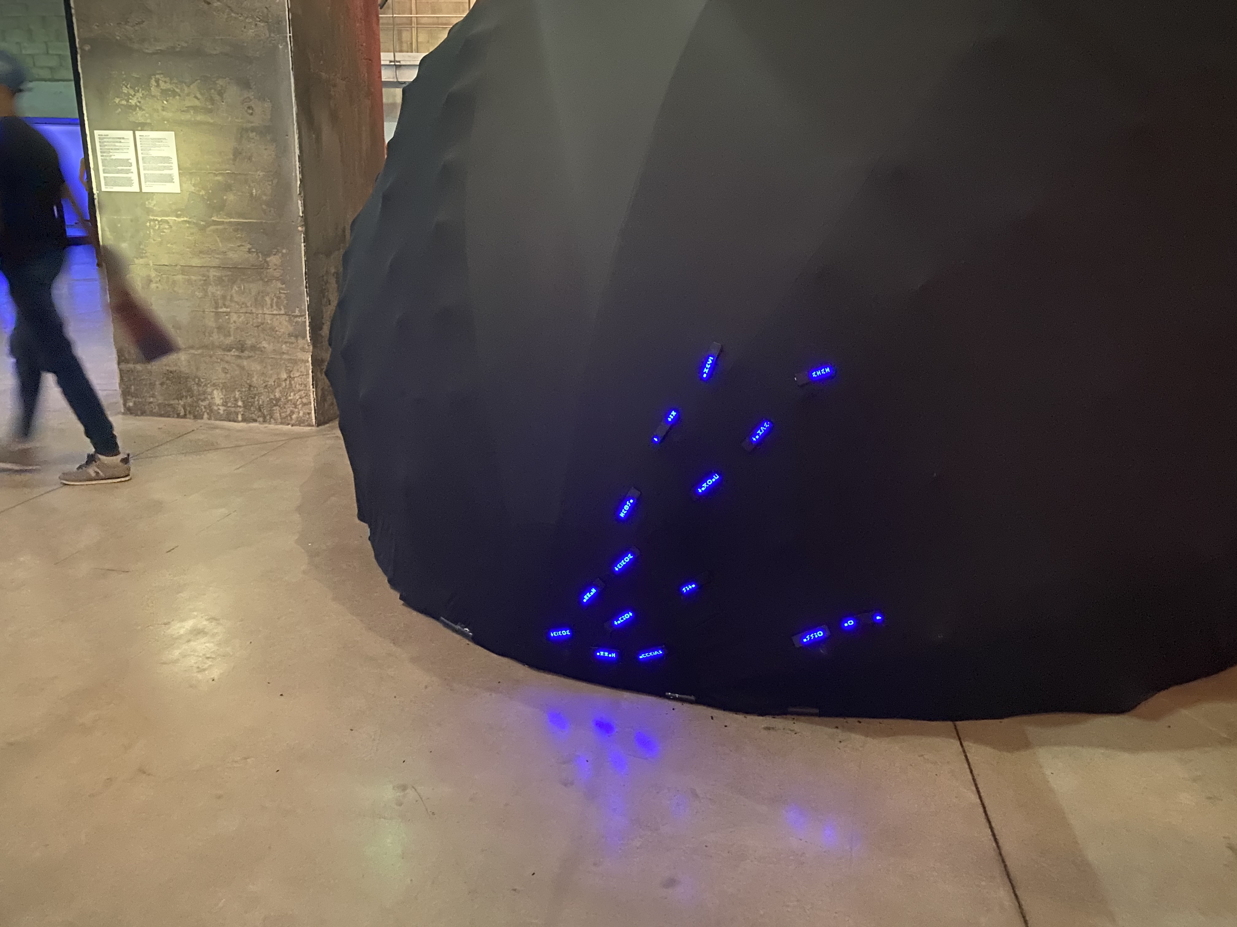 2 meters led pixel screen, video loop, Intervention in Space: 13 pixel badges written in Tifinagh.
